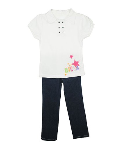 Mecca "Glam Star", Your little one will be the cutest babe on the block in this sweet 2-piece outfit by Mecca! The polo boasts a double gem snap placket, cap sleeves, and a glittering star logo graphic. The straight leg jeans feature an adjustable elastic waistband, zip fly with rhinestone snap, and "Big M" logo embroidery on the back right pocket. She can wear these pieces together or mix and match them as separates - totally cute either way! Top 60% Cotton, 40% Polyester Jeans 98% Cotton, 2% Spandex Machine Wash Cold Made in China